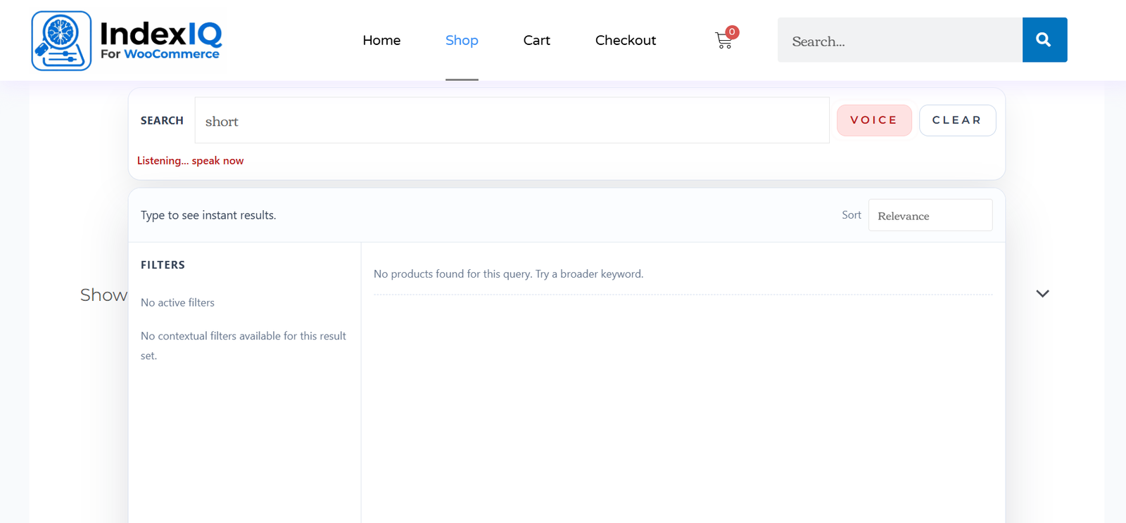 IndexIQ will still find the right products. You can also use the Voice button for a modern search experience